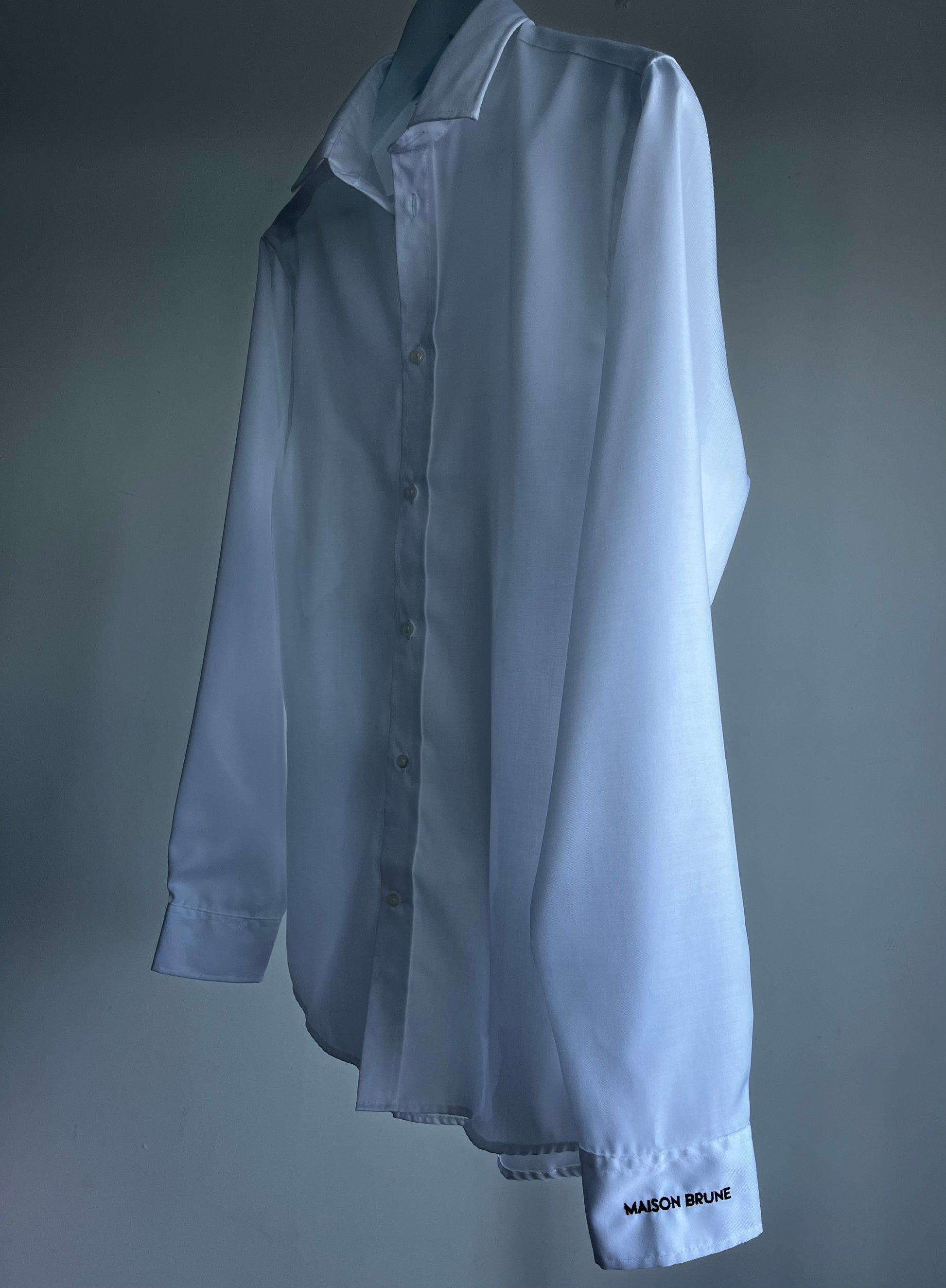 L’intemporel & le chic de notre chemise brodée. Elle se porte large, tout le style de la Maison pour la femme & l’homme.